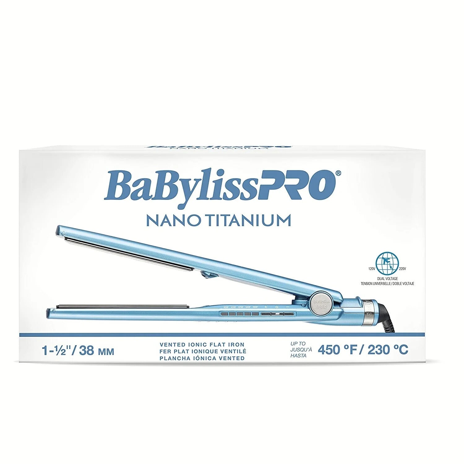 Experience faster, smoother styling with the BaByliss Pro Nano Titanium Vented Ionic Flat Iron – 1‑1/2″ #BNT4093TUC (Dual Voltage), engineered for pros and beauty lovers alike. Its vented titanium plates eliminate excess heat to protect hair while styling, making it ideal for everyday straightening or keratin treatments. The extra‑wide, extra‑long plates heat up quickly to up to 450°F and cover more hair per pass, reducing styling time and fatigue. Ionic technology boosts shine and smoothness while reducing frizz across all hair types from fine waves to thick curls. Its dual‑voltage capability also makes it an essential travel tool.